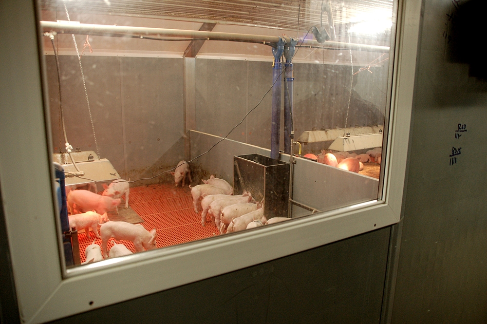Much of this is due to sophisticated environmental controls and the feeding system. An in-house computer controls both the heating and ventilation systems. The number of pigs in each room is punched into a keyboard and any losses are also inputted.